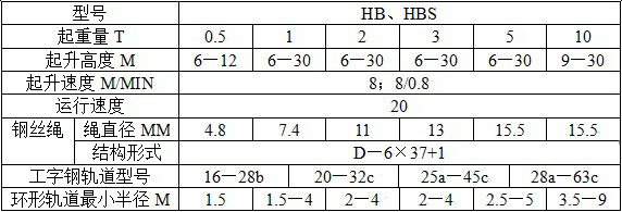 HB、HBS型防爆电动葫芦产品参数: