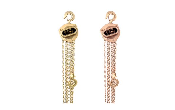成华防爆手拉葫芦采用导热性能良好的铜合金材质,链条摩擦过程中产生的热量可以很快吸收并传导;并且铜合金材质本身相对较软,遇到撞击时有很好的退让性,不至于引发火花、爆炸等不良反应。