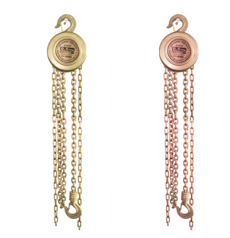 不锈钢手拉葫芦大多数也不会进行烤漆处理,那么这两种手拉葫芦该怎样区分呢?颜色!不锈钢手拉葫芦采用的是合金钢材质,内部掺入了镍 铬 锰元素,颜色大多为银白色,它的外边看起来比较光滑靓丽,有的甚至能够映出影子。防爆手拉葫芦采用的是铝青铜或铍青铜材质,亮度远不及不锈钢手拉葫芦,颜色大多为黄色,从这一点便可以轻松辨别出防爆手拉葫芦了。
